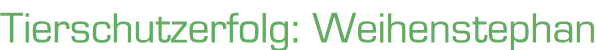 Die Molkerei Weihenstephan, die dem Müller-Milch Konzern gehört, täuschte über mehrere Monate die Verbraucher mit dem Werbeslogan „Milch aus artgerechter Tierhaltung“. Die Milch stammt von Kühen, die in bayrischen Bauernhöfe ganzjährig in der Anbindehaltung leben müssen. Das bedeutet, dass die Kühe niemals zum Grasen auf die Weide kommen, sondern auch im Sommer angebunden auf der gleichen Stelle im Stall stehen. Sie können aufstehen und sich hinlegen, aber nicht umherlaufen oder die wichtigen Sozialkontakte mit anderen Kühen ausüben. Diese Form der Tierhaltung ist zwar nicht verboten, entspricht aber einer artgerechten Tierhaltung in keiner Weise. Nachdem die Gesprächsangebote des Deutschen Tierschutzbundes an die Molkerei nicht angenommen wurden, kritisierte der Deutsche Tierschutzbund die Irreführung der Verbraucher auch öffentlich und initiierte ein Verfahren wegen „unlauteren Wettbewerbs".