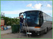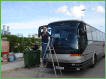 Fragen zum Transportfahrzeug und zur Ausstattung: Es handelt sich um einen ehemaligen Reisebus, der für 101 Personen zugelassen war, 15 Meter lang ist, 15 Tonnen Leergewicht und 3 Achsen hat. Ausgestattet mit allem notwendigen, voll automatische Klimaanlage, damit ein optimales Klima (Temperatur und Frischluft) für die Tiere sichergestellt ist, ebenso befinden sich ausreichend Lüftungsdüsen über allen Boxen. Die Transportboxen werden nach jeder Fahrt ausgebaut, gereinigt, desinfiziert, wie auch die Wasser- und Futternäpfe. Anschließend mit weichen Babyeinlagen ausgestattet. Der Bus wird, nach jeder Fahrt, komplett desinfiziert und mit viel Aufwand und Arbeit wieder alle Boxen eingebaut und nach Vorschrift gesichert. Eine Toilette für die Fahrer und die Begleiter, wie eine Boardküche, 4 Doppel-Schlafsitze und ein Tisch erleichtern die Fahrt etwas, wie auch die Versorgung für die Vierbeiner. Für die beiden ehrenamtlichen Fahrer (der Bus, incl. Ausstattung, ist Eigentum eines Vereinsmitglieds/Fahrers) steht ein 140 x 200 cm Bett zur Verfügung, welches für einen erholsamen Schlaf sorgt und eine sichere Ankunft von Mensch und Tier voraussetzt. Der ehemalige Reisebus ist von der DEKRA als Tiertransportfahrzeug, für Hunde und Katzen, geprüft und zugelassen worden. Eine Anmerkung: Dieser Bus kann nicht überall halten, auf grund seiner Größe und Länge.