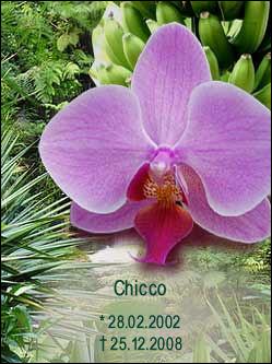 Chicco ist uns leider schon vorausgegangen :-( Mein lieber Chicco, tief traurig bin ich weil Du schon so früh gehen mußtest, noch vor Deinem 8. Geburtstag (* 28.02.2002). Wir vermissen Dich so sehr Chicco. Du reißt ein rießiges Loch in die Familie und Pascha vermißt Dich auch ganz doll. Du warst mein Leben für mich, warst immer an meiner Seite gabst mir immer Kraft in schwierigen Zeiten. Ich hoffe Du bist im Hundehimmel gut aufgenommen worden und kriegst dort Schokodrops in Hülle und Fülle. Ich vermisse Dich und werd Dich niemals vergessen. In meinem Herzen trag ich Dich bei mir bis wir uns wiedersehen. Deine Uli und Renaterl