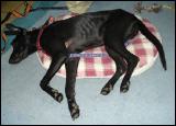 Die arme Maus war 8 Tage/Nächte allein im Wald, hat sich versteckt, lies sich nicht fangen und nur zu bestimmten Zeiten zu sehen. Nachdem wir einen festen Futterplatz eingerichtet hatten, täglich vor Ort waren (Helfer rund um die Uhr) und unsere Nächte in ihrer Nähe verbracht hatten, mein Auto als Lebendfalle diente, konnten wir gestern, durch die Mithilfe einer Freundin und Julies Hundefreundin Amy, Julie endlich fangen. Julie nahm die Spur von Amy auf, verlies ihren gewohnten Platz und hörte Amy bellen. Somit lief Julie zu Amy und deren Frauchen, diese hatte die einmalige Chance Julie zu fassen zu bekommen...... Wir wissen nicht wie wir dieser "Freundin" danken können, da reichen keine Worte. Ohne ihre Hilfe und ohne Amy hätten wir noch viele Tage und Nächte im Wald verbringen müssen. Julie lässt sich wieder anfassen, sie war ausgehungert, ist abgemagert und hing voller Zecken (so viele habe ich noch niemals im Leben an einem Hund sehen können). Ca. 50 Zecken konnten wir vor Ort ziehen, ihre kleinen Wunden noch am Abend versorgen und jetzt gehts zum Tierarzt um sie aufzubauen. Die Nacht verlief sehr ruhig. Julie hat gefressen, trinkt sehr viel und sie hat geschlafen. Heute morgen, 3.6.09, hat sie gefrühstückt, ihr Häufchen gemacht und gerade waren wir beim Tierarzt. Es wurden noch ca. 20 Zecken gezogen, die kleinen Wunden behandelt, sie bekam ein Aufbaumittel, ein Antibiotikum (welches Julie noch 10 Tage bekommt). Nun liegt sie satt auf der Couch und schläft. Es geht der Maus wieder gut :-)