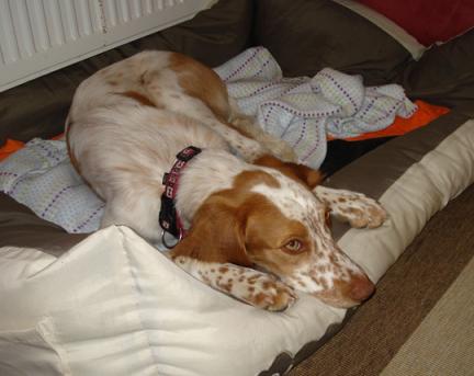 Molli, eine bildhübsche Mischlingshündin aus Pointer und Bretone, wurde aus schlechter Haltung geholt und wird jetzt bei ihrer Pflegemutter gepflegt. Moli ist am 26.09.2009 geboren, gechipt, geimpft und entwurmt und freut sich auf Ihren Besuch. Die kleine Maus wurde aufgepäppelt und lernt jetzt die Sonnenseite des Lebens kennen. Sie ist verträglich mit anderen Hunden, Katzen und liebt Kinder. Moli spielt und tobt gerne und geniesst Streicheleinheiten und Kuschelstunden mit seinen liebsten Menschen. Die Süsse ist stubenrein und fährt problemlos Auto. Außerdem bleibt sie auch schon ein paar Stunden am Tag alleine. Erste Versuche ohne Leine gassi zu gehen klappen schon sehr gut. Molis neues Hobby ist das Apportieren ihre Spielzeugs. Sie ist eine sehr intelligente Junghündin die schnell lernt und viel Spass am lernen neuer Dinge hat. Wir wünschen uns für die Kleine eine Familie die sie verwöhnt und in der Moli Hund sein darf. Moli hat das Hunde-ABC und, dass man auch Hundefutter fressen kann, gelernt. Sie hattte bisher noch nicht viel schönes erlebt, ist aber trotzdem eine sehr verträgliche und liebesbedürftige Maus. Ein Traumhund für eine Familie, die ihr ein Zuhause geben möchte. Einfach schreiben oder anrufen, wir freuen uns auf Sie.- vermittelt -